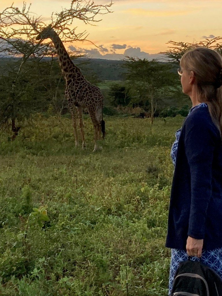 Am Samstag stehen wir früh auf, um an den Hausgemeinde-Treffen teilzunehmen, für die wir aufgeteilt werden. Ich gehe mit einigen Einheimischen bei Sonnenaufgang zu Fuß durchs Dorf – und stehe plötzlich direkt neben einer Giraffe. Träume ich?