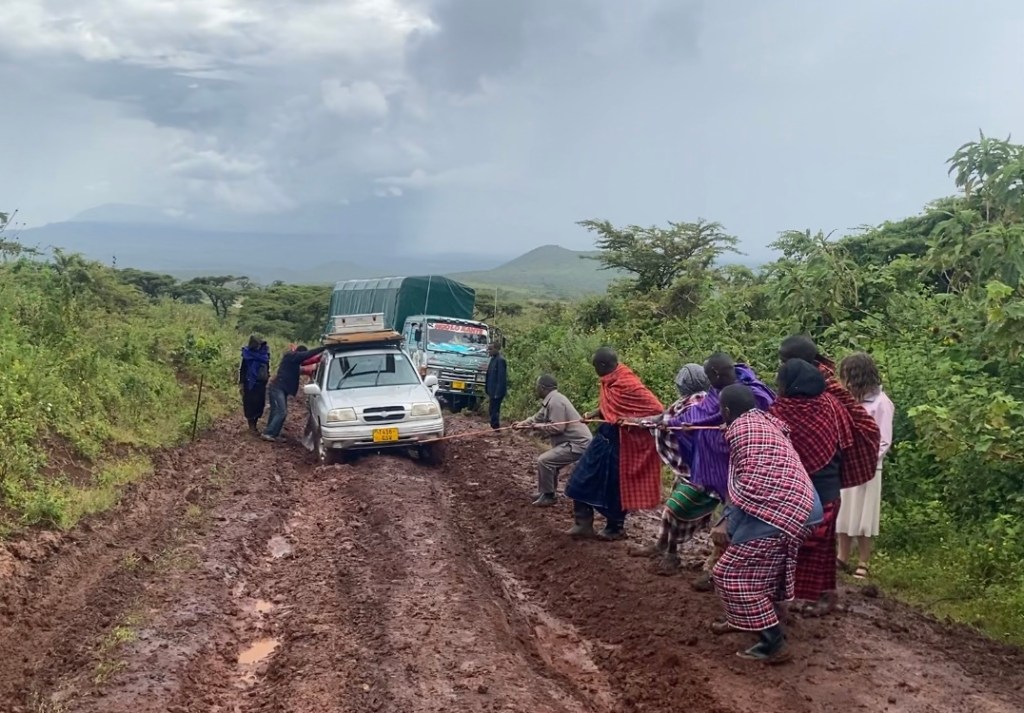 Der junge Kerl lässt seine Fahrgäste nicht einmal aussteigen. Total gechillt zieht er unser Auto im Rückwärtsgang aus dem Schlamm. Wir können es kaum fassen.