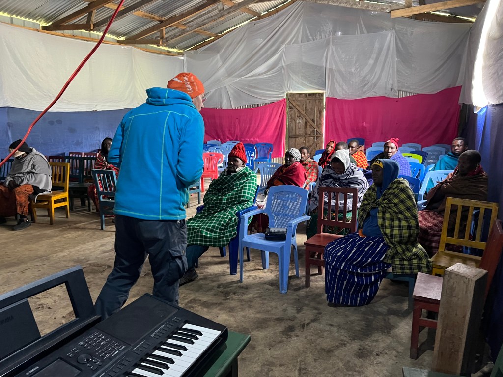 In der Wellblechkirche mit „eingebautem Durchzug“ fühle mich, als unterrichteten wir in einer Kühlkammer.